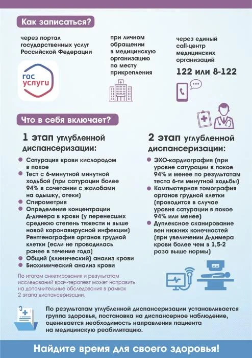 Данное мероприятие направлено на своевременное выявление осложнений и предупреждения их прогрессирование после перенесенной новой коронавирусной инфекции.